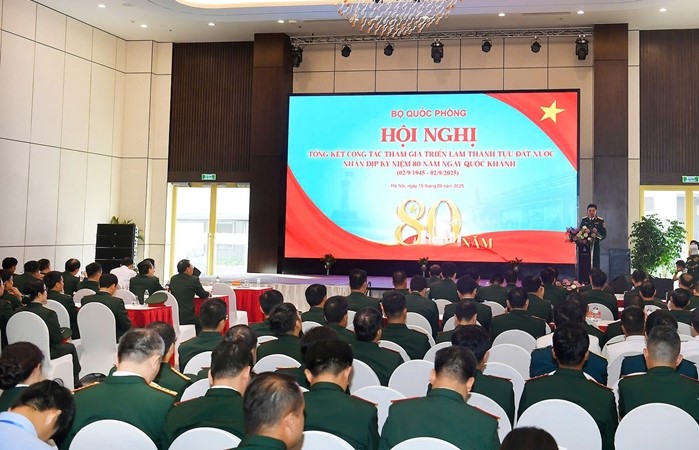 CNQP&KT - Chiều 15/9, tại Trung tâm Hội chợ triển lãm quốc gia, Bộ Quốc phòng đã tổ chức Hội nghị tổng kết công tác tham gia Triển lãm Thành tựu đất nước nhân dịp kỷ niệm 80 năm Ngày Quốc khánh (2/9/1945 - 2/9/2025).