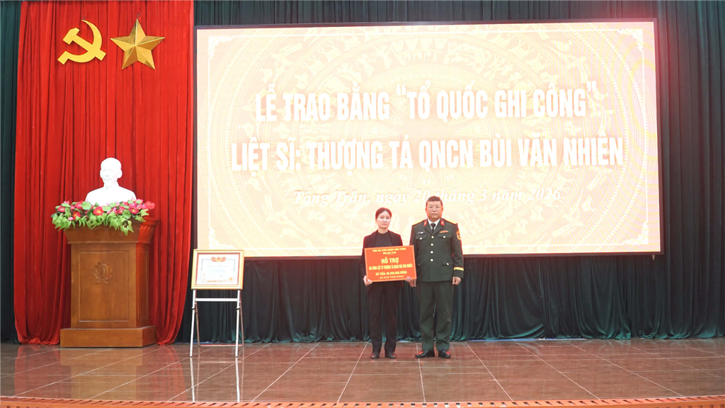 CNQP&KT – Sáng 20/3, tại Hưng Yên, Nhà máy Z195 (thuộc Tổng cục Công nghiệp quốc phòng-CNQP) phối hợp cùng Ủy ban nhân dân xã Tống Trân tổ chức Lễ trao Bằng “Tổ quốc ghi công” Liệt sĩ Thượng tá QNCN Bùi Văn Nhiên.