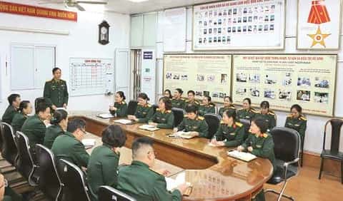 Giao ban triển khai công việc tại Viện Mô phôi lâm sàng Quân đội.  Ảnh: TUẤN MINH