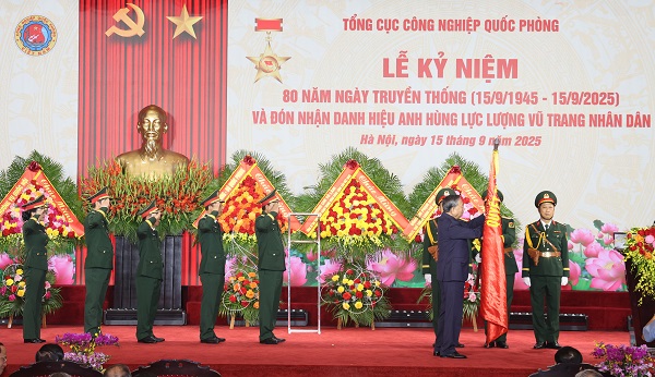 CNQP&KT - Sáng ngày 15/9, tại Hà Nội, Tổng cục Công nghiệp quốc phòng tổ chức Lễ kỷ niệm 80 năm Ngày truyền thống (15/9/1945 - 15/9/2025) và đón nhận danh hiệu Anh hùng Lực lượng vũ trang nhân dân. Đồng chí Tô Lâm, Tổng Bí thư Ban chấp hành Trung ương Đảng Cộng sản Việt Nam, Bí thư Quân ủy Trung ương, dự và chỉ đạo buổi Lễ.