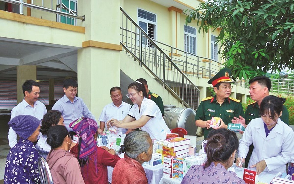Lực lượng Quân y Đoàn KTQP 337 (Quân khu 4) cấp phát thuốc miễn phí cho nhân dân.        Ảnh: CTV