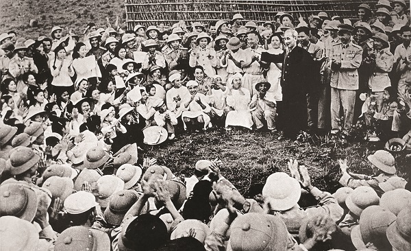 Chủ tịch Hồ Chí Minh thăm và nói chuyện với đồng bào, cán bộ, bộ đội, công nhân nông trường Mộc Châu - Sơn La (ngày 8/5/1959).         Ảnh: TL