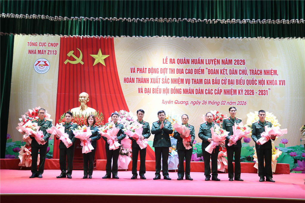 CNQP&KT - Sáng 26/2, tại Tuyên Quang, Nhà máy Z113 (thuộc Tổng cục Công nghiệp quốc phòng) đã tổ chức Lễ ra quân huấn luyện năm 2026 và phát động đợt thi đua cao điểm với chủ đề “Đoàn kết, dân chủ, trách nhiệm, hoàn thành xuất sắc nhiệm vụ tham gia bầu cử đại biểu Quốc hội khóa XVI và đại biểu Hội đồng nhân dân các cấp nhiệm kỳ 2026 - 2031”.