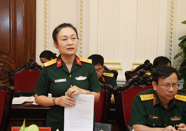 Đại biểu Cục Tuyên huấn, Tổng cục Chính trị phát biểu tại hội nghị.