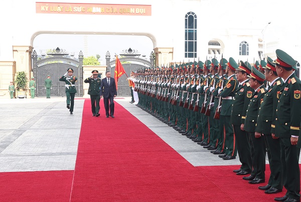 Đồng chí Tô Lâm, Tổng Bí thư Ban chấp hành Trung ương Đảng cộng sản Việt Nam duyệt đội danh dự.
