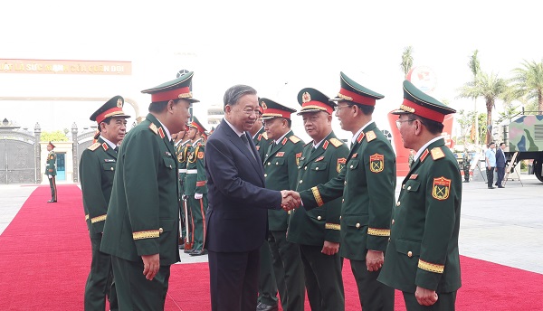 Phát biểu chỉ đạo tại buổi Lễ, thay mặt lãnh đạo Đảng, Nhà nước, đồng chí Tổng Bí thư Tô Lâm ghi nhận, đánh giá cao và nhiệt liệt biểu dương truyền thống tốt đẹp và những thành tích đặc biệt xuất sắc của ngành Quân giới - Tổng cục CNQP, đã góp phần xứng đáng vào sự nghiệp đấu tranh giải phóng dân tộc, xây dựng và bảo vệ Tổ quốc Việt Nam XHCN. Trước yêu cầu nhiệm vụ nặng nề trong thời gian tới, đồng chí Tổng Bí thư Tô Lâm yêu cầu Quân ủy Trung ương, Bộ Quốc phòng tập trung lãnh đạo, chỉ đạo Tổng cục CNQP tiếp tục quán triệt nghiêm túc, triển khai có hiệu quả các nghị quyết của Bộ Chính trị về xây dựng và phát triển CNQP, trọng tâm là Nghị quyết số 08-NQ/TW ngày 26/1/2022 về đẩy mạnh phát triển CNQP đến năm 2030 và những năm tiếp theo. Đẩy mạnh ứng dụng KHCN, đổi mới sáng tạo và chuyển đổi số trong nghiên cứu phát triển các loại vũ khí, trang bị kỹ thuật mới, có ý nghĩa chiến lược; làm chủ các công nghệ nền, công nghệ lõi, chip bán dẫn, vật liệu tiên tiến… Bên cạnh đó, phát triển công nghệ lưỡng dụng phục vụ dân sinh, với mục tiêu quốc gia khởi nghiệp từ CNQP; đẩy mạnh hợp tác quốc tế, đưa CNQP Việt Nam tham gia sâu vào chuỗi giá trị toàn cầu… Đồng thời, tập trung phát triển nguồn nhân lực chất lượng cao, nhất là đội ngũ nhà khoa học, cán bộ nghiên cứu có trình độ, năng lực đáp ứng yêu cầu nhiệm vụ. Đồng chí Tổng Bí thư Tô Lâm bày tỏ tin tưởng Tổng cục CNQP sẽ tiếp tục phát huy truyền thống vẻ vang, nêu cao tinh thần đoàn kết, chủ động, sáng tạo trong mọi lĩnh vực công tác, hoàn thành thắng lợi nhiệm vụ được giao, mãi mãi xứng đáng với niềm tin yêu, tự hào của Đảng, Nhà nước, Quân đội và Nhân dân.
