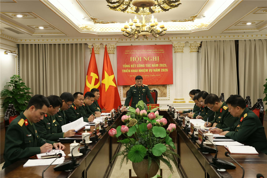 CNQP&KT - Sáng 26/12, Tổng cục Công nghiệp quốc phòng (CNQP) tổ chức hội nghị tổng kết thực hiện Quy chế dân chủ cơ sở năm 2025; đề ra phương hướng, nhiệm vụ năm 2026. Thiếu tướng Nguyễn Đức Tăng, Ủy viên Thường vụ Đảng ủy, Phó Chính ủy Tổng cục CNQP, Trưởng ban chỉ đạo Quy chế dân chủ cơ sở của Đảng ủy Tổng cục chủ trì hội nghị.
