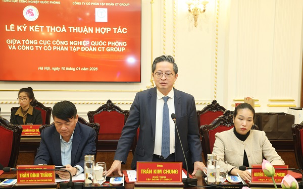 Theo thông tin tại buổi lễ, Tổng cục CNQP và Công ty cổ phần Tập đoàn CT Group tổ chức lễ ký kết thỏa thuận hợp tác làm cơ sở để hai bên phối hợp nghiên cứu, phát triển các sản phẩm, công nghệ lưỡng dụng phục vụ quốc phòng, an ninh và phát triển kinh tế- xã hội. Trong đó, hai bên tập trung vào các nội dung trọng tâm như: nghiên cứu, phát triển nền tảng UAV; chuyển giao công nghệ vi mạch, chip, AI, pin năng lượng mới, vật liệu nhẹ, quan sát, chống nhiễu, dẫn đường số; đào tạo và phát triển nguồn nhân lực; nghiên cứu và chia sẻ kết quả khoa học, công nghệ (KHCN); hợp tác xuất nhập khẩu; gia công sản xuất và cung cấp các sản phẩm phụ trợ…