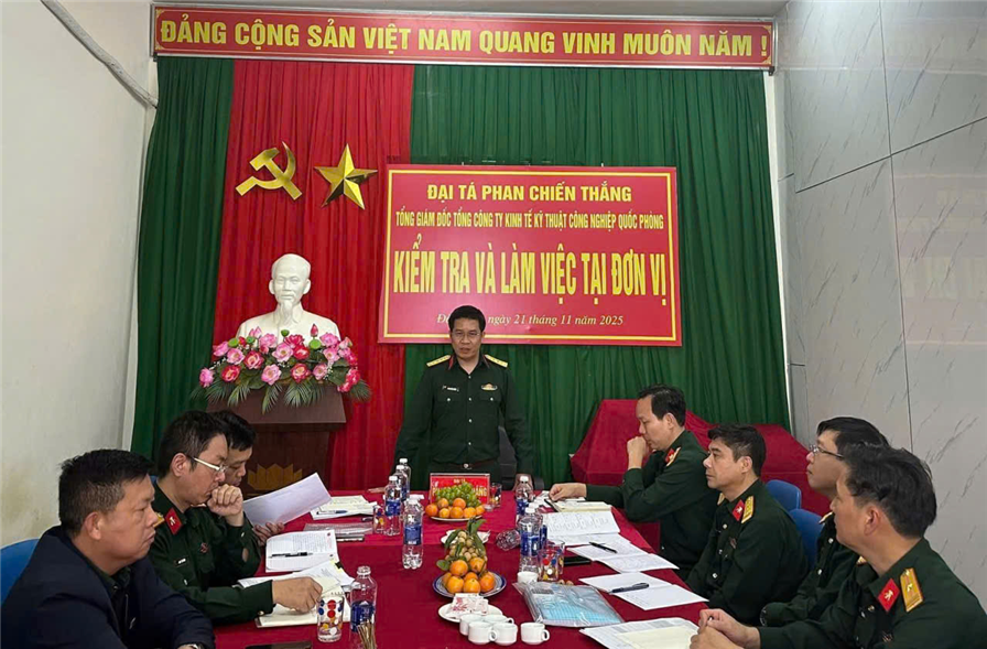 Tại buổi làm việc, đoàn đã nghe lãnh đạo, chỉ huy đơn vị báo cáo kết quả thực hiện nhiệm vụ năm 2025 và công tác quản lý, bảo quản VLNCN tại kho Huế, Đà Nẵng. Dù thời tiết mưa bão kéo dài, ảnh hưởng trực tiếp đến hoạt động sản xuất - kinh doanh, đơn vị đã chủ động khắc phục khó khăn, duy trì nghiêm chế độ trực, bảo đảm an ninh - an toàn kho tàng và hoàn thành cơ bản các chỉ tiêu kinh doanh được giao.