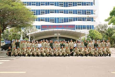 Lực lượng Gìn giữ hòa bình Việt Nam chụp ảnh lưu niệm cùng cán bộ, nhân viên Đoàn 298. Ảnh: CTV