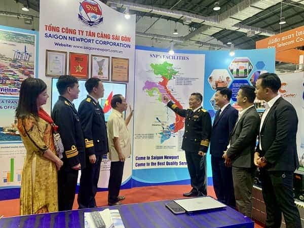 Gian hàng của Tổng công ty Tân Cảng Sài Gòn thu hút đông đảo khách tham quan.